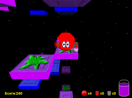 The aim of the game is to paint all of the blue tiles purple by jumping up and down to reach each "layer" of tiles. Each level consists of a variety of obstacles to make the game more challenging as well as moving platforms, teleporters and other collectables that may be useful.